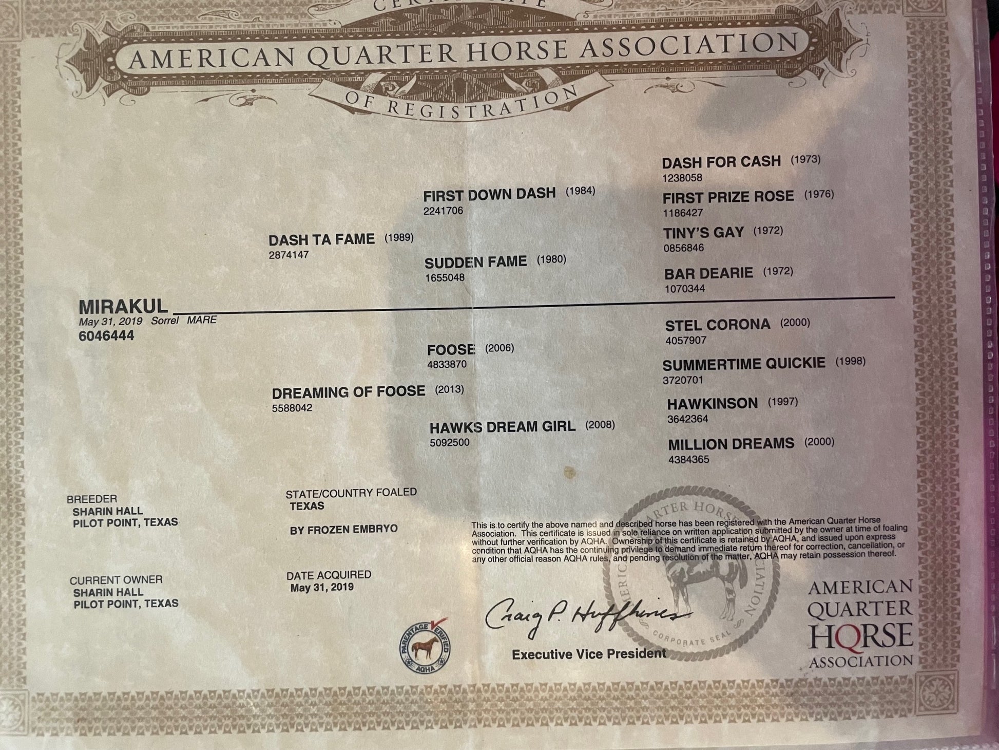 A proven performing daughter of Dash Ta Fame, with $45k + LTE, Mirakul is the only foal out of multiple futurity champion Dreaming Of Foose, the leading barrel horse by champion race horse Foose. Dreaming Of Foose was a 7X futurity winner with $100K+ LTE (no incentives) prior to her untimely passing at the AQHA World Show. We look for her to be one of our top producing broodmares here at Sharin Hall Barrel Horses LLC.